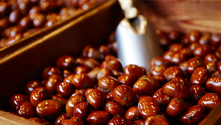 店頭では熟練の技で丹念に甘栗を焼き上げています。